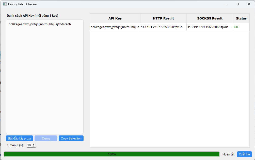 Lấy Proxy HTTP/SOCKS5 IP:PORT:USER:PASS từ API key – dùng cho Chrome, giả lập, điện thoại.